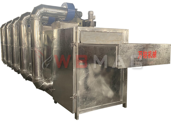 出料裝置:位于烘干室的后端,經(jīng)過烘干后的物料從這里排出。出料裝置通常包括出料輸送帶、集料斗等,出料輸送帶將烘干后的物料從網(wǎng)帶上輸送到集料斗中,以便進(jìn)行后續(xù)的包裝、儲(chǔ)存或進(jìn)一步加工。