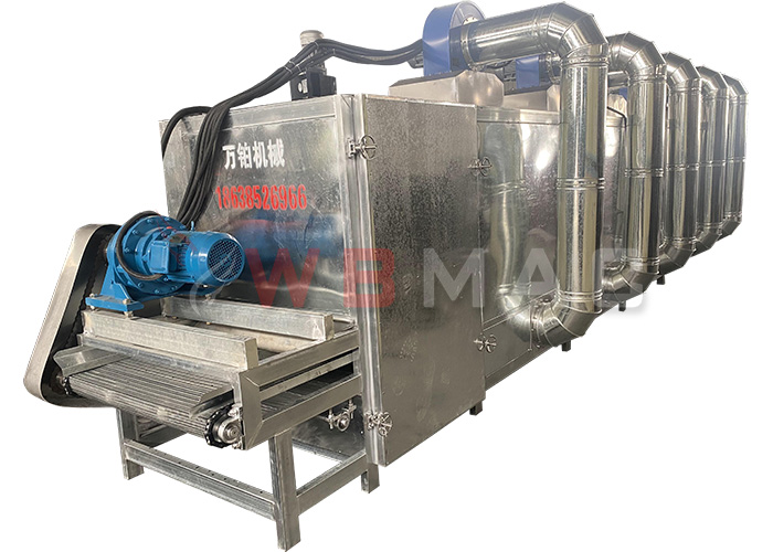 烘干效果好:通過多個(gè)溫區(qū)的設(shè)置,可以根據(jù)物料的烘干特性,精確控制不同階段的烘干溫度和風(fēng)速,使物料烘干均勻,質(zhì)量穩(wěn)定。同時(shí),網(wǎng)帶的透氣性好,物料與熱氣流能夠充分接觸,保證了烘干效果。