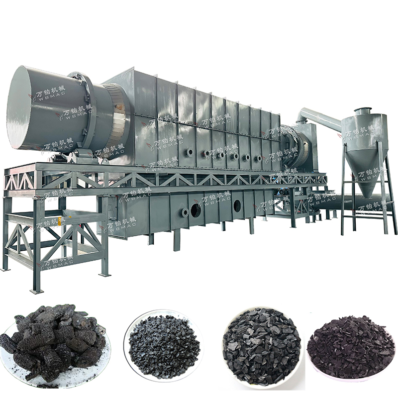 工作原理:連續(xù)式炭化爐的工作原理是通過將物料加入炭化爐內,利用密閉空間內的少氧條件,在高溫下進行干餾碳化。炭化過程中產生的煙氣經過煙氣凈化系統(tǒng)處理后,重新回到炭化爐內進行燃燒,形成循環(huán)加熱,達到無煙、環(huán)保的效果。最終成品炭經過冷卻機降溫后輸出?。