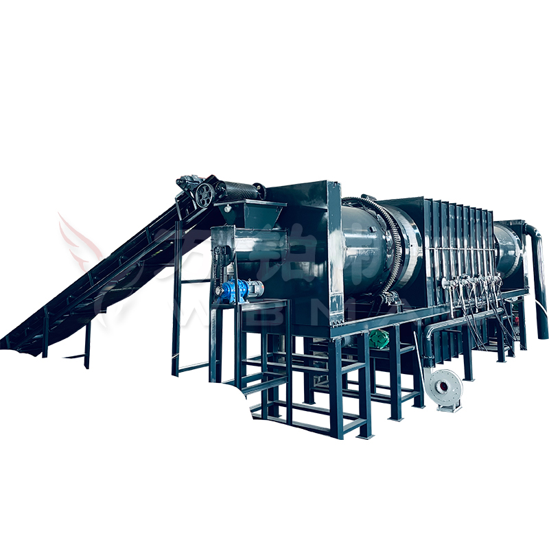 漆包線炭化爐工作原理:將物料處于缺氧環(huán)境中,加熱至一定溫度,并保持一定的時間,使物料表面噴漆、鍍膜、包塑、涂料、油污等受熱分解為揮發(fā)分氣體及碳渣,從而與金屬物表面徹底分解脫落、剝離,達到有效回收金屬物的目的。